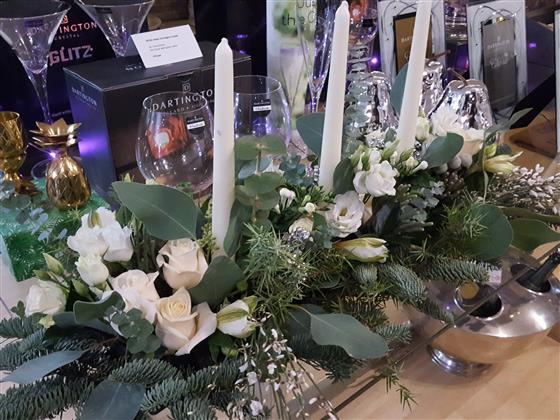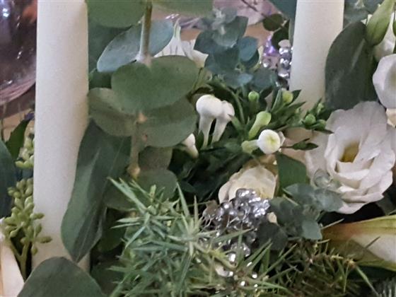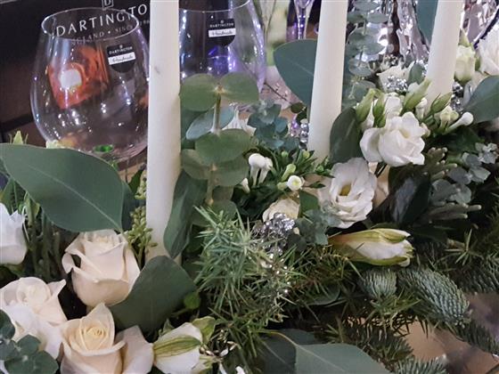 Comprising White/ivory roses, Lisianthus, Touches of gypsophilia, Skimmia and Winter foliages