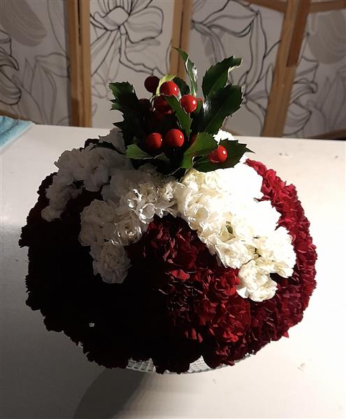 A Christmas Pudding made with flowers. An original and unusual centre piece for your Christmas table!