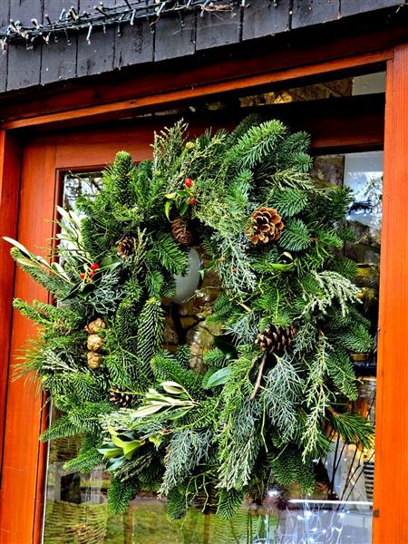 Approximately 48cm in diameter, this beautiful natural seasonal door wreath features a selection of unusual greenery including