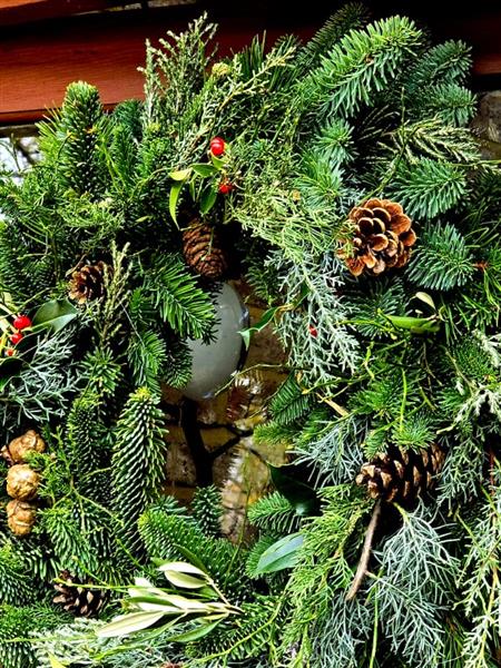 Nobilis pine, Sussex silver, cypress, pinus mugo, huckleberry, Holly, Olive